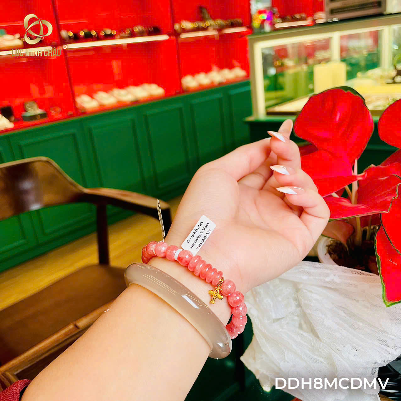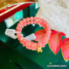 Sắc đào nhẹ nhàng, hạt 8 li tròn đều và nổi bật trên tay.