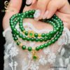 Chuỗi phỉ thúy lục đế vương 5li quấn 3 VIP lỗ nhỏ mix charm vàng 18K – hạt phỉ thúy tự nhiên size 5mm xanh lục đậm óng ánh, quấn 3 vòng thanh lịch, lỗ nhỏ tinh tế, kết hợp charm vàng 18K sang trọng lấp lánh. Thiết kế tinh xảo, đẳng cấp, dễ mix đồ. Ngọc tự nhiên 100% từ Lục Minh Châu!