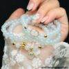 Chuỗi phỉ thuý trắng băng chủng 6 li Type A mix túi tiền phỉ thuý & charm vàng 18K VIP