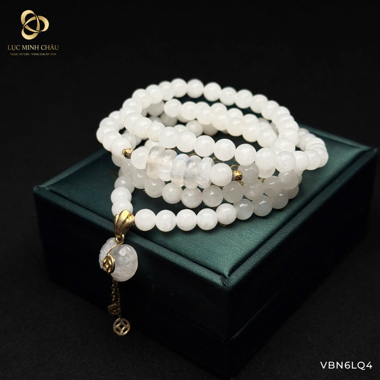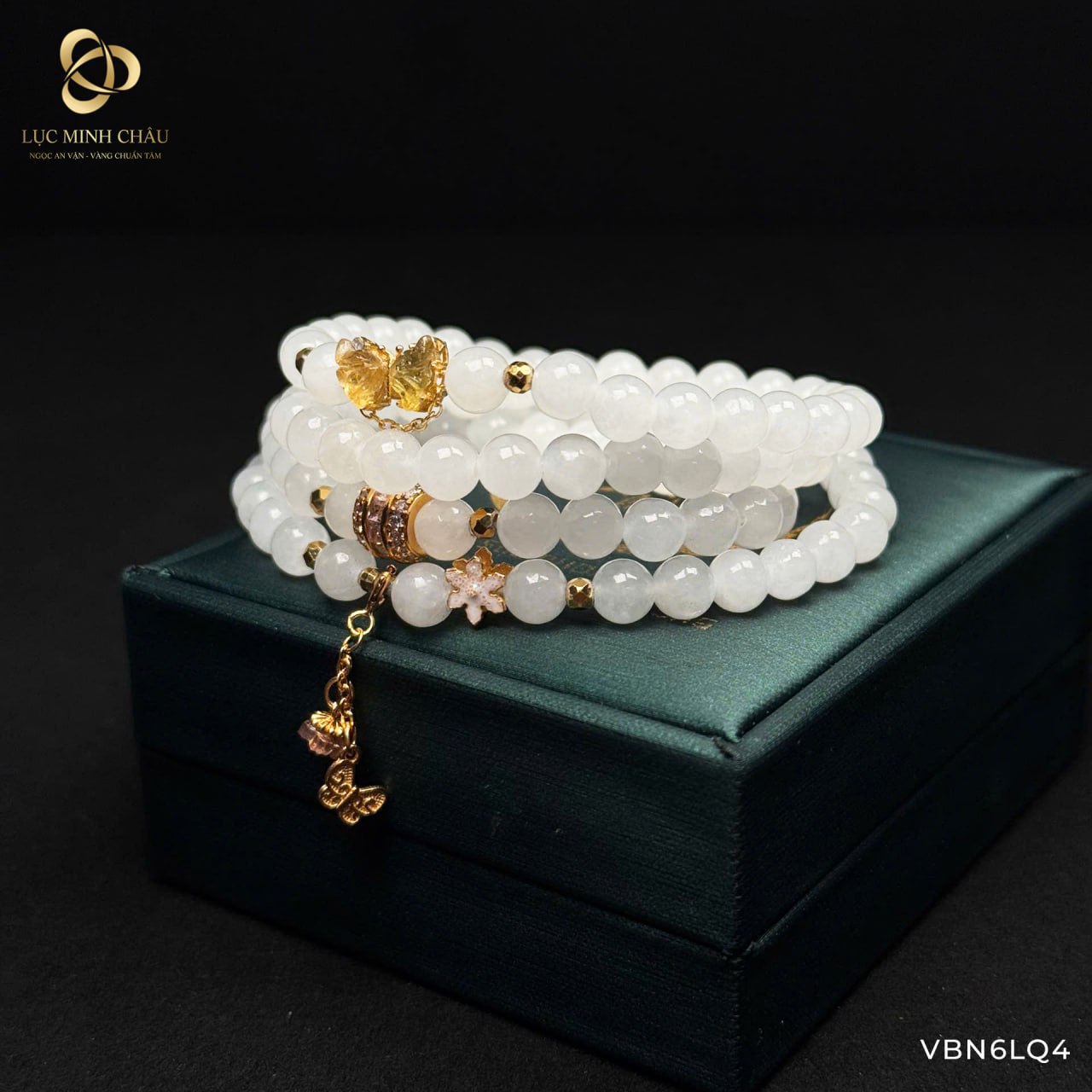 🔮 Sắc ngọc trắng sáng, thiết kế quấn 4 vòng mềm mại, mix charm tinh tế, đeo lên tay mang vẻ đẹp nổi bật và nữ tính