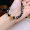 Hãy là người đầu tiên nhận xét “Vòng Thạch Anh Tóc Đen 8ly mix charm chuông hồ lô bạc mạ vàng”