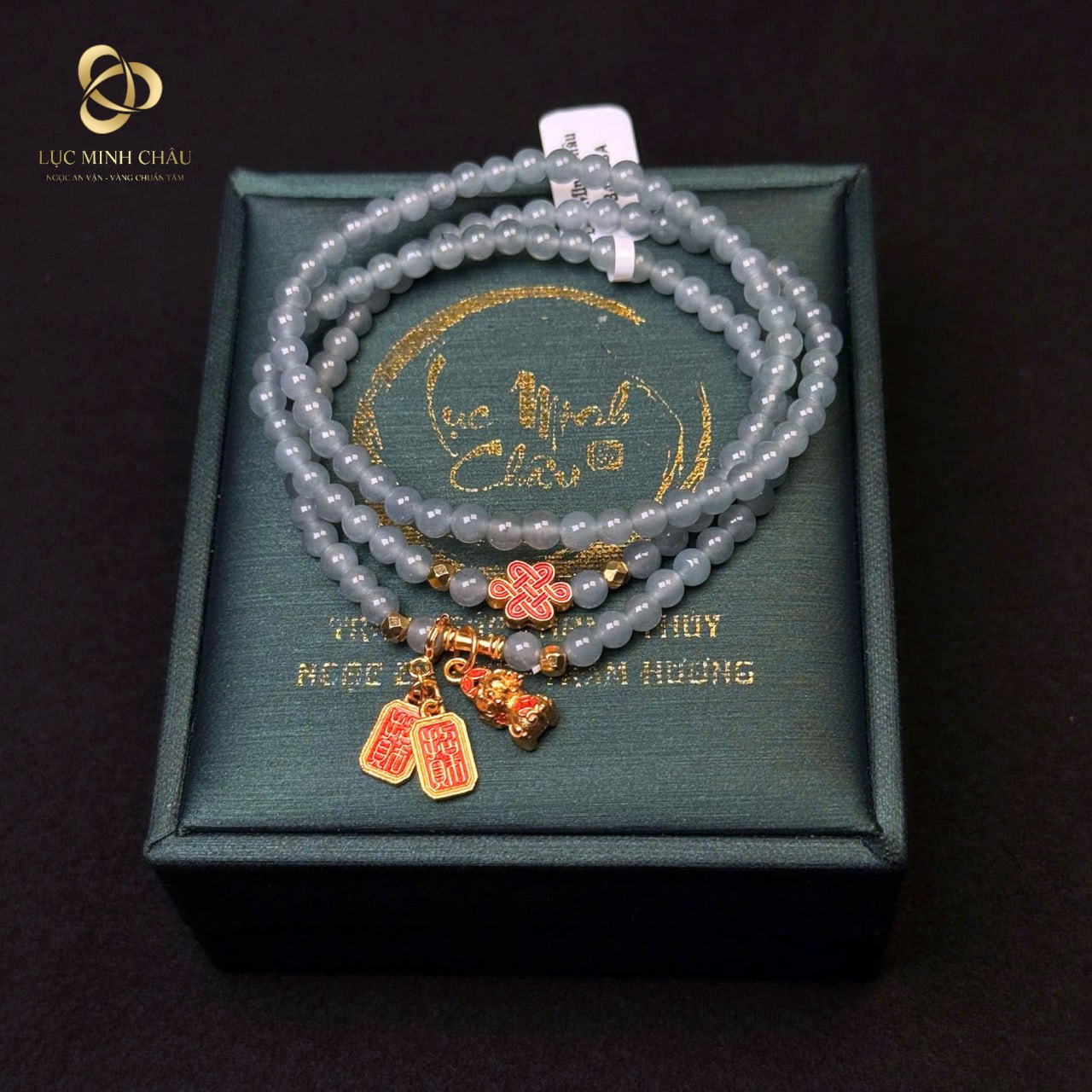 💎 Vòng Phỉ thuý băng 4 ly mix charm bạc bình an
